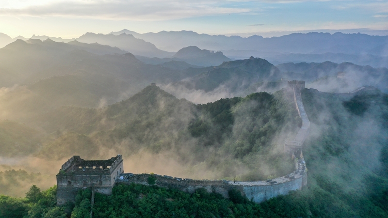 8月25日清晨,位于河北省承德市灤平縣的金山嶺長城出現(xiàn)云海景觀。涌動的云海與長城、山巒相互交融,壯美如畫。