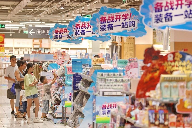 8月24日,在浙江省嘉興市南湖區(qū)一家商場(chǎng),家長帶著孩子選購學(xué)習(xí)用品。