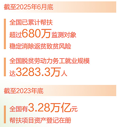 防止返貧動(dòng)態(tài)監(jiān)測(cè)幫扶機(jī)制是鞏固拓展脫貧攻堅(jiān)成果最基本的制度安排。這幾年,各地建立健全防止返貧致貧動(dòng)態(tài)監(jiān)測(cè)幫扶機(jī)制,截至6月底,全國(guó)已累計(jì)幫扶超過(guò)680萬(wàn)監(jiān)測(cè)對(duì)象穩(wěn)定消除返貧致貧風(fēng)險(xiǎn),義務(wù)教育、基本醫(yī)療、住房安全和飲水安全保障水平得到鞏固提升。