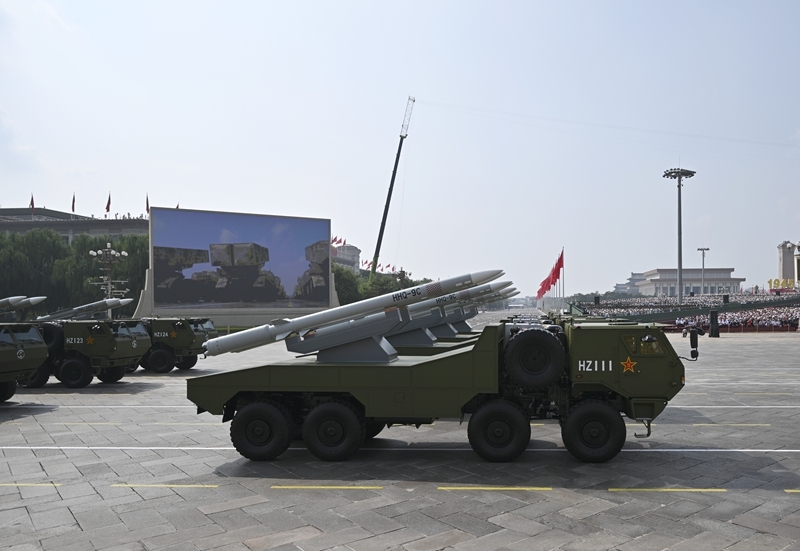 9月3日,紀念中國人民抗日戰(zhàn)爭暨世界反法西斯戰(zhàn)爭勝利80周年大會在北京隆重舉行。這是反艦導彈方隊接受檢閱。