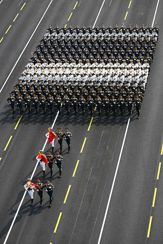 9月3日,紀念中國人民抗日戰(zhàn)爭暨世界反法西斯戰(zhàn)爭勝利80周年大會在北京隆重舉行。這是空中護旗梯隊接受檢閱。