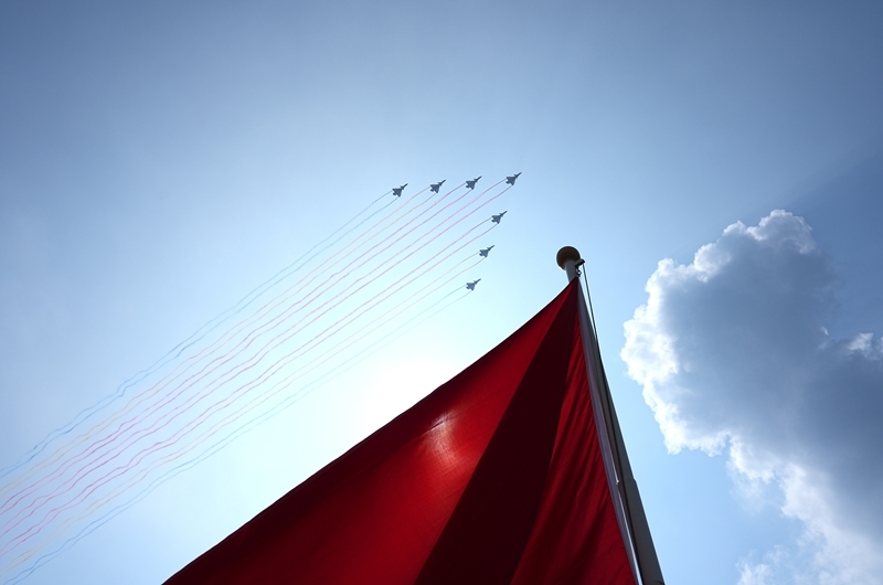 9月3日,紀念中國人民抗日戰(zhàn)爭暨世界反法西斯戰(zhàn)爭勝利80周年大會在北京隆重舉行。這是教練機梯隊接受檢閱。