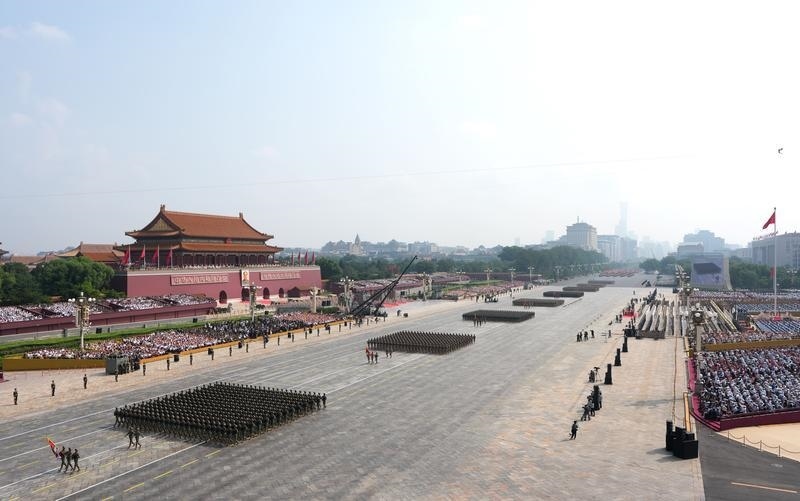 9月3日,紀(jì)念中國(guó)人民抗日戰(zhàn)爭(zhēng)暨世界反法西斯戰(zhàn)爭(zhēng)勝利80周年大會(huì)在北京隆重舉行。這是徒步方隊(duì)接受檢閱。