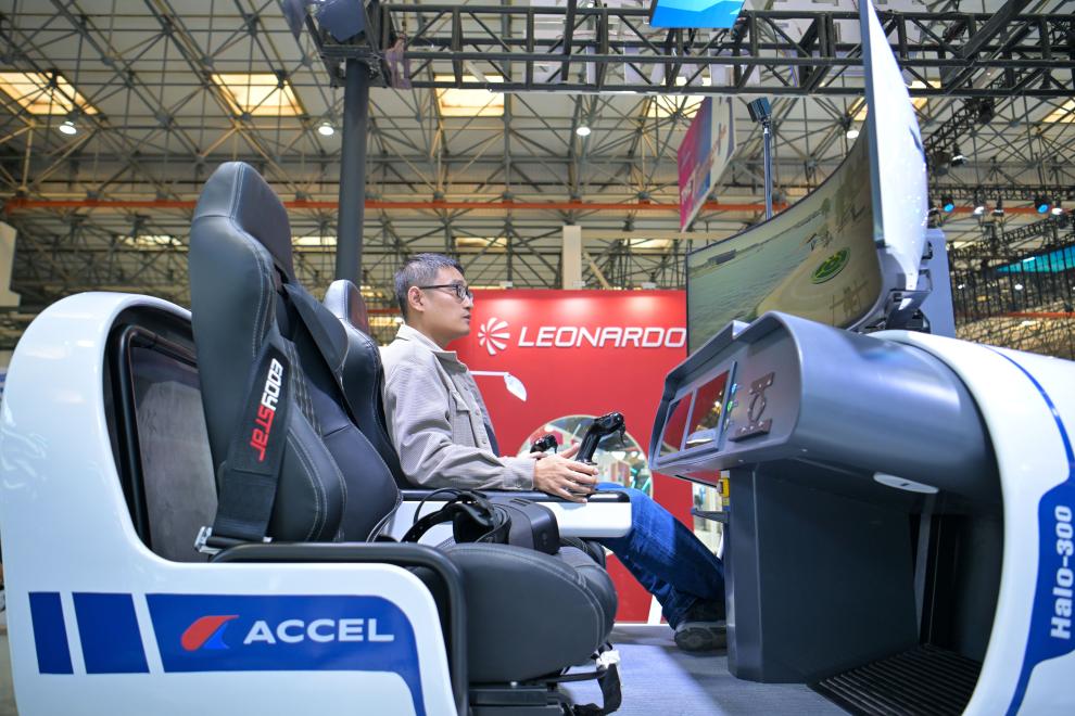 模擬機(jī)上,屏幕上正顯示GIS系統(tǒng)和MR技術(shù)生成的虛擬現(xiàn)實(shí)場(chǎng)景。隨著機(jī)器開啟,座位搖晃、手柄震動(dòng),伴隨飛機(jī)起降、顛簸等過(guò)程中的失重感,記者體驗(yàn)了一把“開飛機(jī)”?!拔覀冮_發(fā)出虛擬飛行訓(xùn)練視景系統(tǒng),可以針對(duì)不同城市以及特殊場(chǎng)景搭建對(duì)應(yīng)環(huán)境,支持低空環(huán)境飛行訓(xùn)練。”北京賽四達(dá)科技股份有限公司工作人員劉正晨說(shuō)。