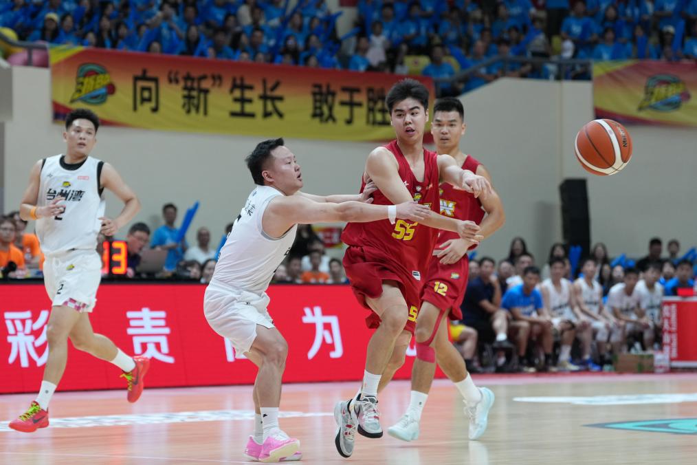 圖為9月10日“浙BA”臺(tái)州灣新區(qū)隊(duì)對陣嘉興隊(duì)的比賽現(xiàn)場。新華社記者 黃宗治 攝