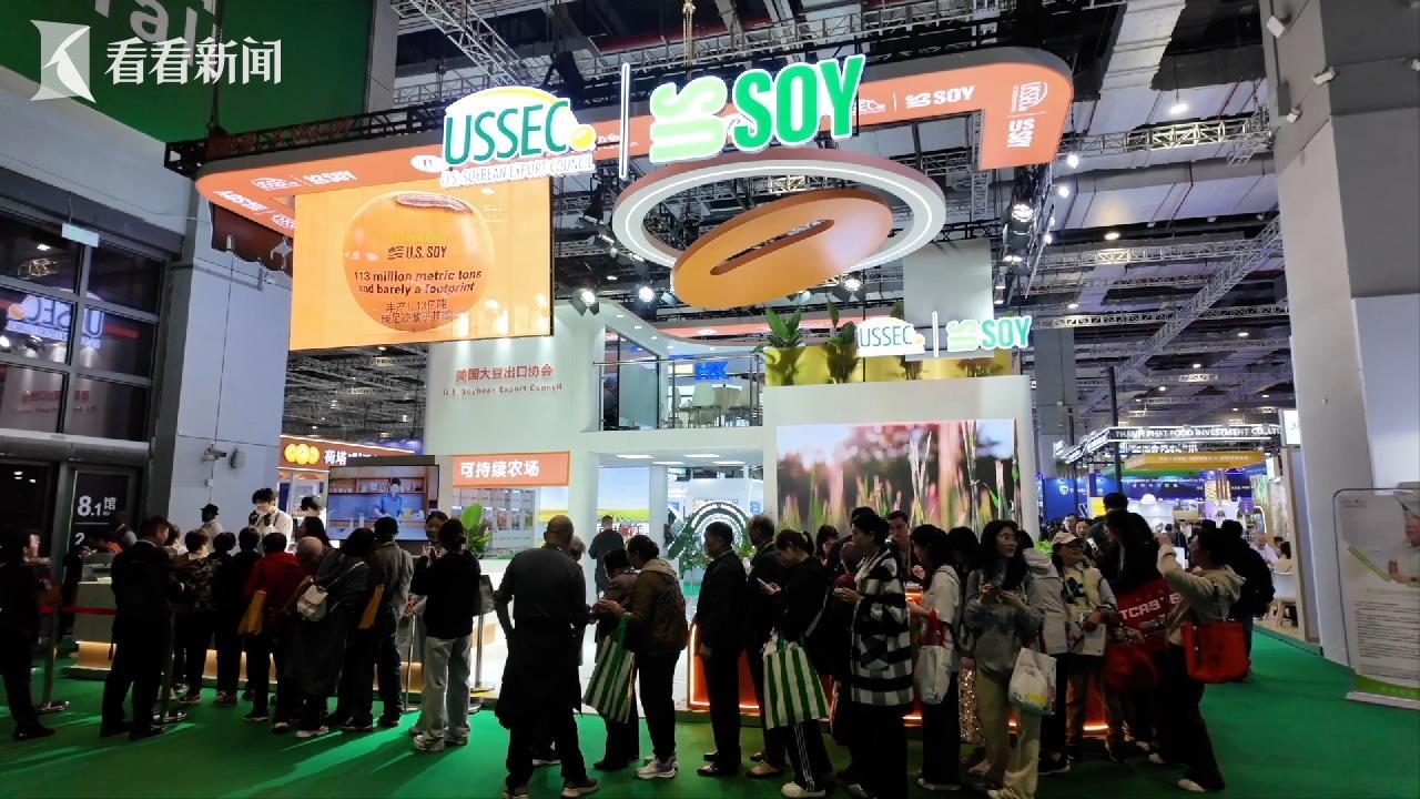 蘇健說的不是客套話。進博會一開始,他的行程就滿滿當(dāng)當(dāng)——開館剪彩、客商對接、媒體專訪。他的身后,是一群帶著中文名片、中文宣傳資料的豆農(nóng),賣力帶貨。“正如大家在現(xiàn)場看到的,我們可以把大豆加工成大豆油,這種油品更適合高溫烹飪?!泵绹罐r(nóng)蓋思凱說。