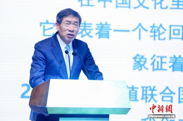 11月13日,聯(lián)合國(guó)開(kāi)發(fā)計(jì)劃署(UNDP)在北京舉辦成立60周年招待會(huì)。圖為聯(lián)合國(guó)副秘書(shū)長(zhǎng)、聯(lián)合國(guó)開(kāi)發(fā)計(jì)劃署代理署長(zhǎng)徐浩良致辭,呼吁各方秉持團(tuán)結(jié)精神,拿出更大決心,應(yīng)對(duì)全球發(fā)展挑戰(zhàn)。(UNDP供圖)