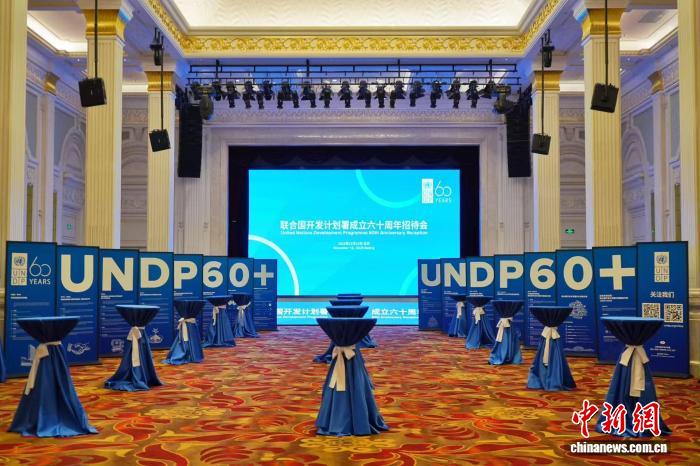 11月13日,聯(lián)合國(guó)開(kāi)發(fā)計(jì)劃署在北京舉行成立60周年招待會(huì),回顧在華合作歷程,重申將繼續(xù)深化合作,攜手推動(dòng)可持續(xù)發(fā)展。圖為招待會(huì)現(xiàn)場(chǎng)。(UNDP供圖)