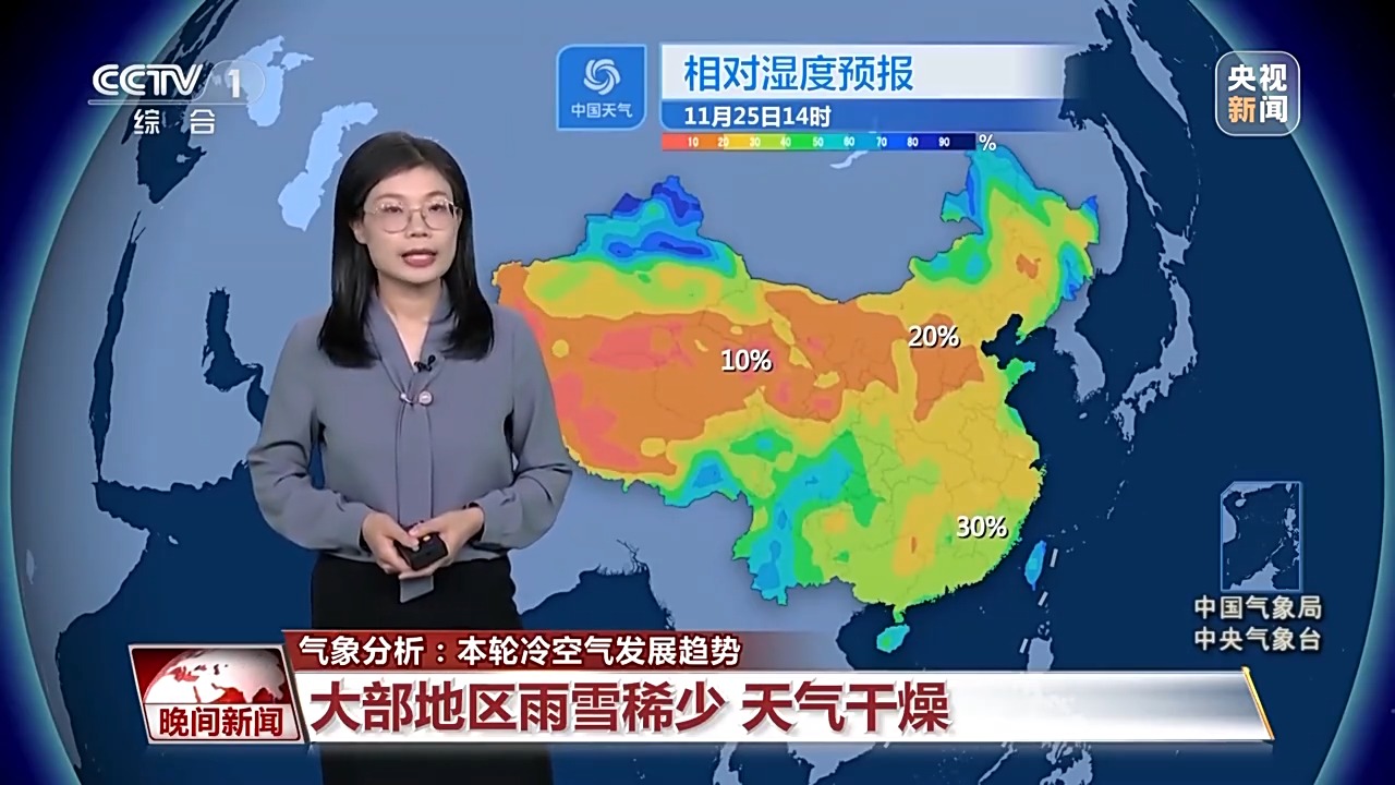 冷空氣帶來的雨雪并不多,而且在偏北風(fēng)吹拂之下,天氣會非常干燥。像是西北華北等地,午后的相對濕度可能只有20%左右,局部地區(qū)甚至不足10%,就連南方相對濕度也只有30%上下,所以整體都會是比較干燥的狀態(tài),大家要及時補(bǔ)充水分,并且注意用火安全。