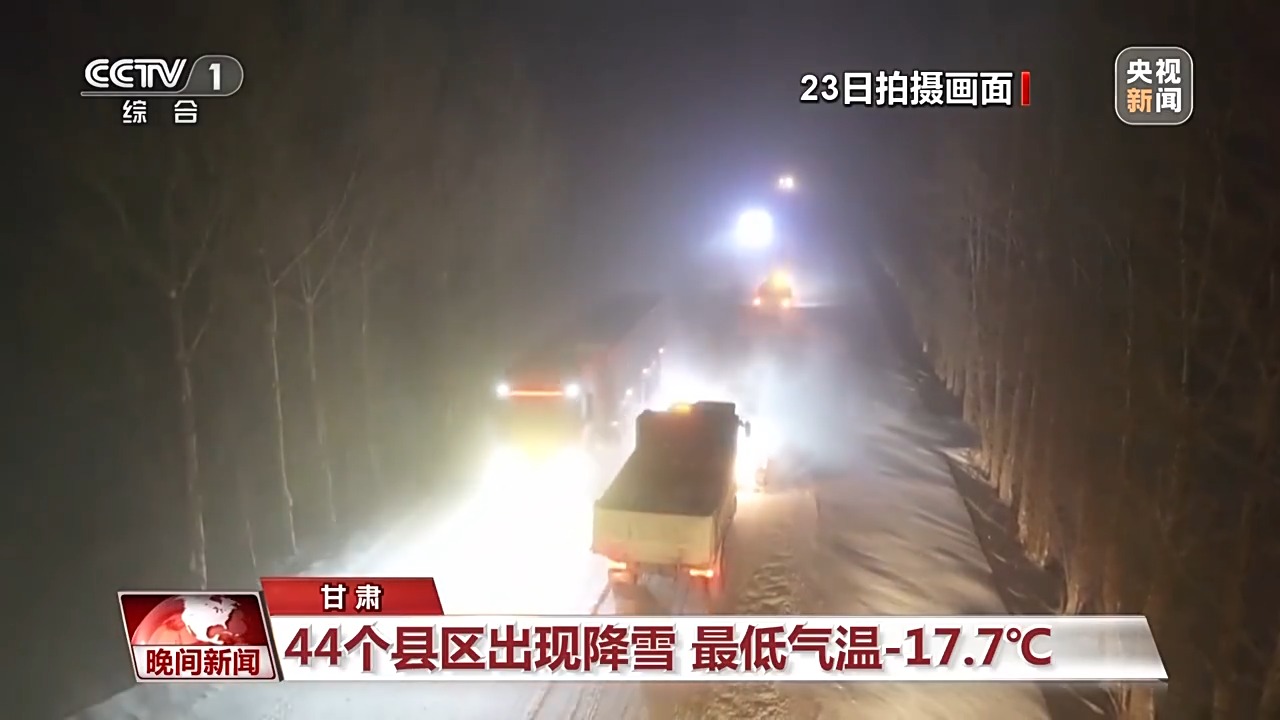 從11月23日起,受較強(qiáng)冷空氣影響,甘肅自西向東出現(xiàn)大風(fēng)、降溫和雨雪天氣。據(jù)監(jiān)測,23日8點至24日8點,甘肅省44個縣區(qū)出現(xiàn)降雪,全省大部最低氣溫已降至-6℃以下,張掖民樂出現(xiàn)全省最低氣溫-17.7℃。受地面積雪和結(jié)冰影響,多條高速及國、省干道局部路段實施臨時交通管制。