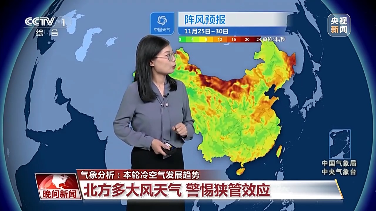 冷空氣帶來的大風(fēng)比較頻繁,尤其是25日、26日以及29日前后,從西北到華北黃淮會陸續(xù)刮起5至7級的風(fēng),陣風(fēng)可以達(dá)到8到9級,尤其是會出現(xiàn)狹管效應(yīng)的區(qū)域,風(fēng)力會更大。