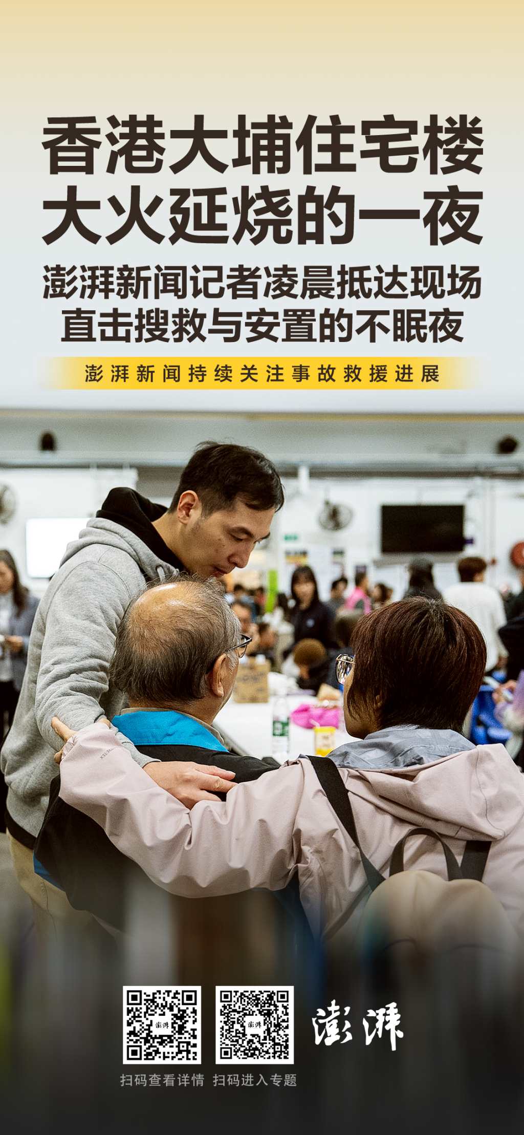 在消防隊(duì)徹夜救援的同時(shí),宏福苑附近的中華基督教會(huì)馮梁結(jié)紀(jì)念中學(xué)氣氛也比平時(shí)更為緊張,在這個(gè)臨時(shí)安置點(diǎn),熱心市民不斷扛著成箱的飲用水、干糧涌入,有人則提著大包小包的被褥、毛毯、厚外套。住在元朗區(qū)的陳先生說,事發(fā)后他挨個(gè)給安置點(diǎn)打電話,晚上9點(diǎn)下班后直接開車去采購(gòu)物資,來來回回已經(jīng)跑了4個(gè)點(diǎn)位運(yùn)輸,“能幫就幫,公民責(zé)任”。