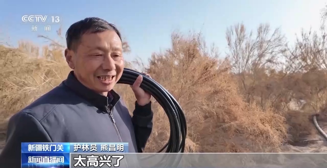 眼下這個(gè)季節(jié),正是冬季巡林最忙碌的時(shí)候,新疆鐵門關(guān)市營盤鎮(zhèn)53歲的護(hù)林員熊昌明,每天早晨都會(huì)和同事在泵房會(huì)合,一起去檢修梭梭林里的滴灌帶。
