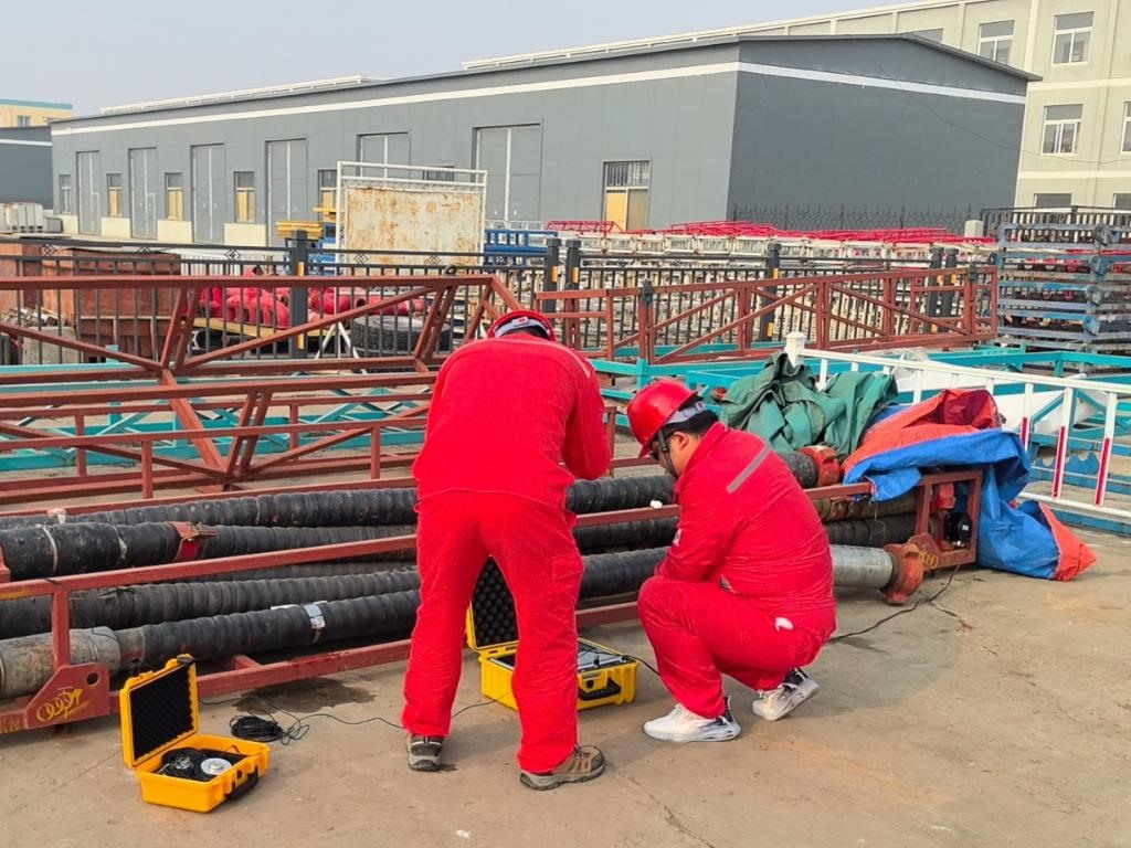 安徽中科昊音智能科技有限公司工作人員正在對(duì)油田軟管管道進(jìn)行聲紋AI檢測(cè)。受訪者供圖