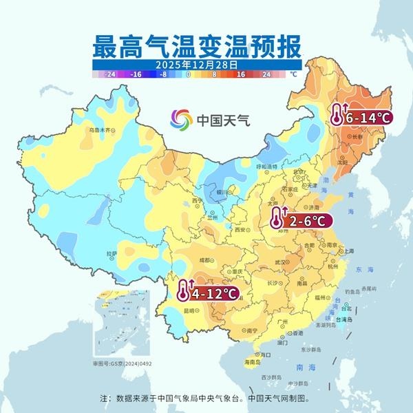 這場(chǎng)年尾超級(jí)大回暖正在席卷我國(guó)大部地區(qū),并將持續(xù)至29日。明后天,回暖幅度和范圍進(jìn)一步升級(jí),北方地區(qū)明天氣溫普遍達(dá)到高點(diǎn),南方地區(qū)將在后天(29日)前后迎來過程氣溫高點(diǎn)。其中明天,最高氣溫0℃線將同期少見地挺進(jìn)東北,并北抬至吉林中部,黃淮南部到江南普遍在15℃以上,華南也將重返20℃以上,短袖有了重新出場(chǎng)的機(jī)會(huì)。
