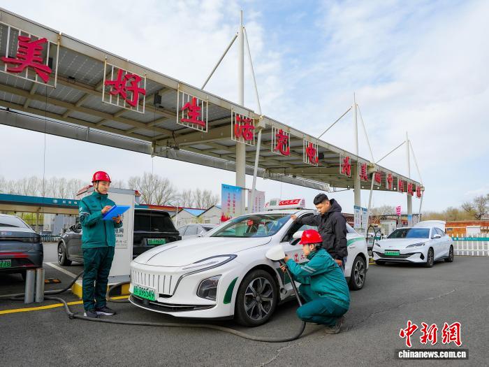 一新能源汽車在長(zhǎng)春市蔚山路充換電站充電。(資料圖)(國(guó)網(wǎng)吉林省電力有限公司供圖)