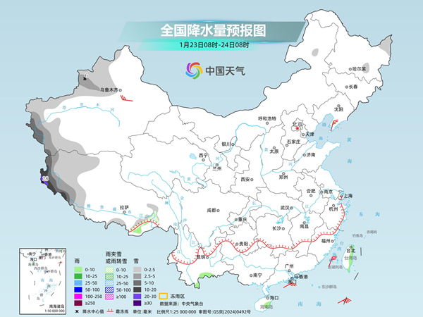 中央氣象臺(tái)預(yù)計(jì),今天,新疆南疆西部山區(qū)、西藏西部等地部分地區(qū)有小到中雪,其中,新疆南疆西部山區(qū)部分地區(qū)有大到暴雪。湖南南部、廣西西北部等地局地有凍雨。云南東南部、廣西中東部、福建中部、臺(tái)灣島中東部等地部分地區(qū)有小雨,其中,臺(tái)灣島東部局地有中雨。