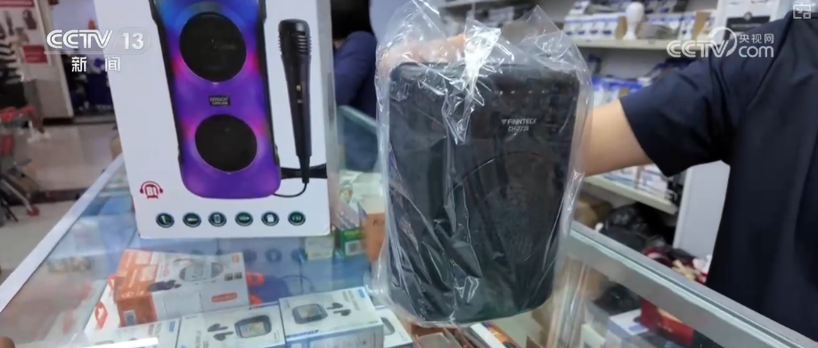 在南非首都開普敦的一家中國商品批發(fā)城里,顧客絡繹不絕。一款集收音機、燈光、移動電源等為一體的多功能藍牙音箱格外受歡迎。