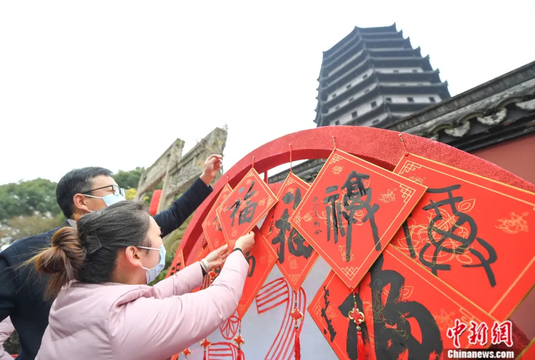 2022年1月1日,人們在杭州六和塔下“曬福”。六和塔始建于宋開寶三年(970年),塔基原址系吳越王錢弘俶的南果園。錢弘俶舍園建塔原為鎮(zhèn)壓江潮。中新社記者 王剛 攝