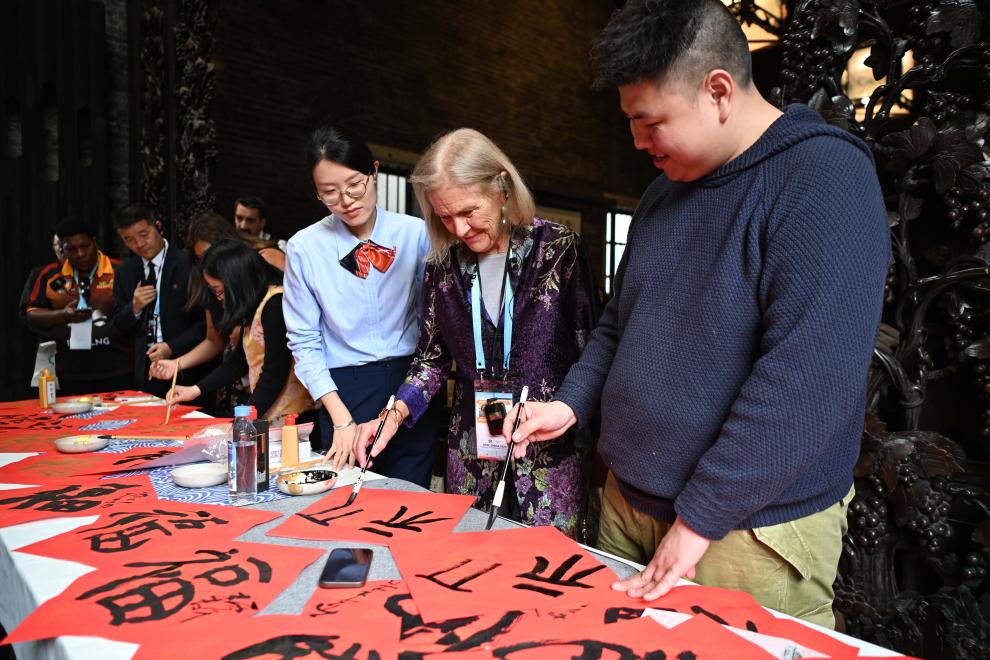 2月6日,亞太經(jīng)濟合作組織(APEC)2026年第一次高官會及相關(guān)會議的部分與會代表在廣州陳家祠體驗中國書法。 新華社記者 鄧華 攝