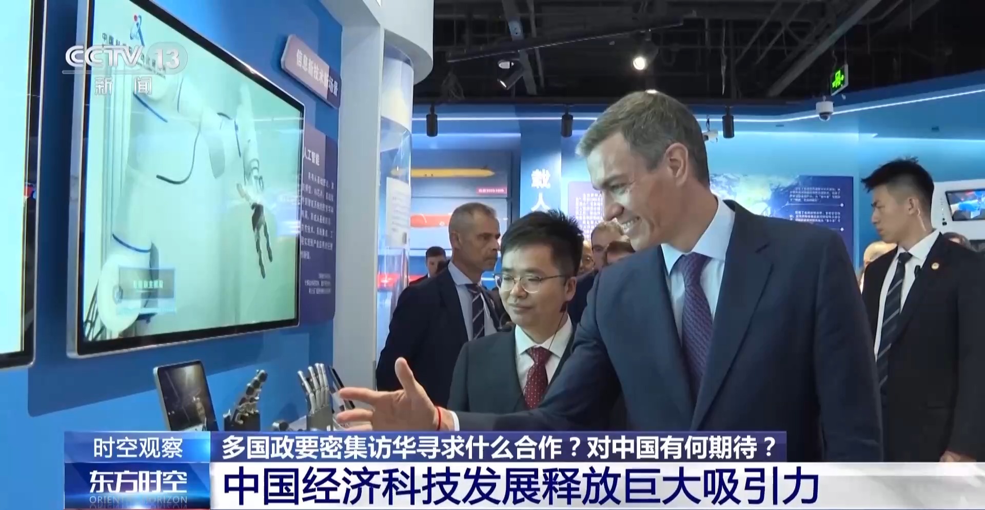 北京外國語大學(xué)歐盟與區(qū)域發(fā)展研究中心主任 崔洪建:我們看到他們在訪華的行程中,都毫無例外地要安排到處走走看看,其中就要親身體驗(yàn)中國科技發(fā)展的成就?,F(xiàn)在中國已經(jīng)進(jìn)入了以科技總體創(chuàng)新來帶動經(jīng)濟(jì)發(fā)展的一個新的階段。近期中方無論是在人工智能,在數(shù)字,在其他的制造業(yè)方面等的一些成就,毫無疑問已經(jīng)讓中國成了世界科技創(chuàng)新的中心。