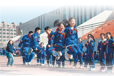 內蒙古呼和浩特市南馬路小學的師生在課間活動。丁根厚攝