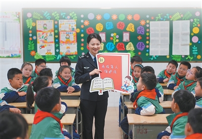 浙江金華市婺城區(qū)人民檢察院檢察官在轄區(qū)小學開展法治宣傳教育。金思成攝