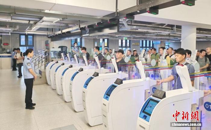 跨境建設(shè)者經(jīng)皇崗口岸出境大廳智能快捷通道“絲滑”通關(guān)?;蕧忂厵z站供圖