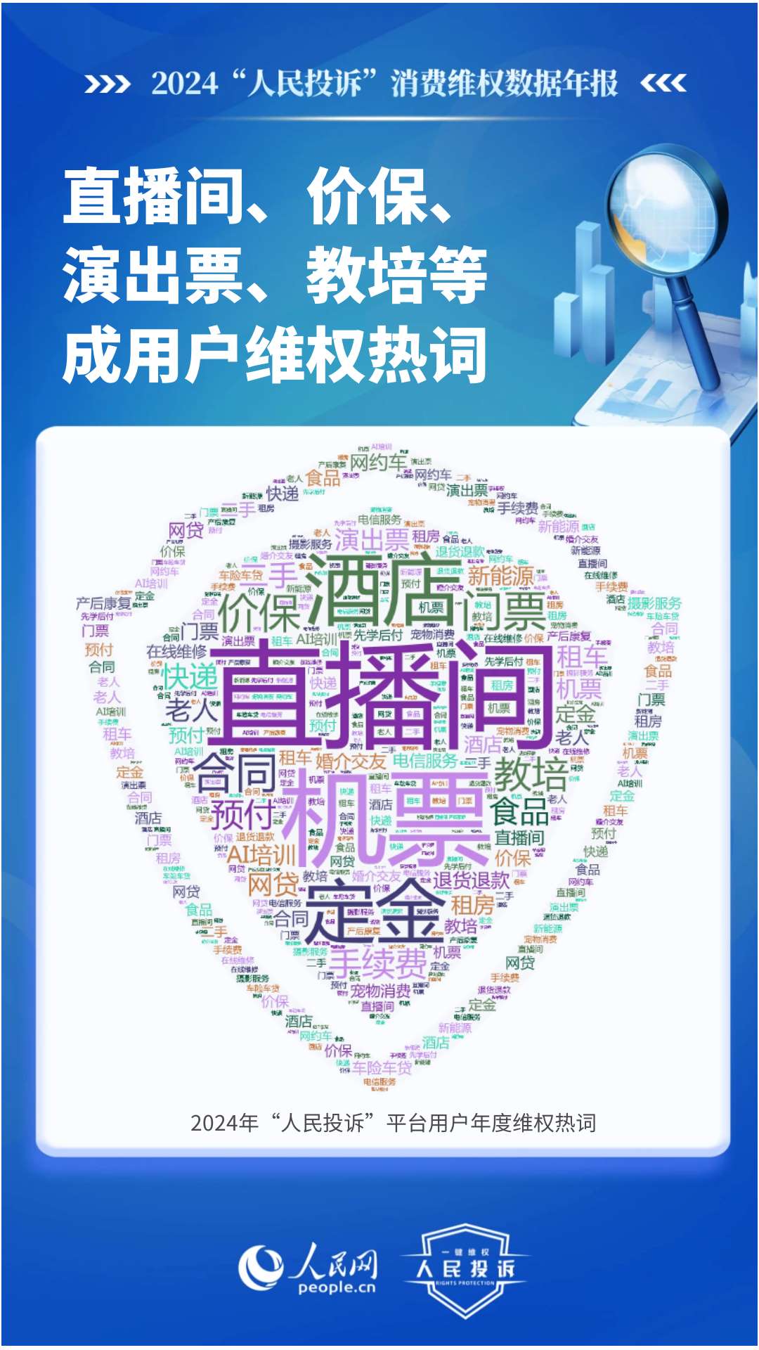 2024年,旅游消費(fèi)持續(xù)火爆,以舊換新“換”出消費(fèi)新活力,直播電商“品質(zhì)化”轉(zhuǎn)型,新能源汽車(chē)購(gòu)銷(xiāo)兩旺……在消費(fèi)市場(chǎng)熱力持續(xù)提升的背景下,旅游產(chǎn)品退訂難,電商促銷(xiāo)虛假價(jià)保,直播間營(yíng)銷(xiāo)違規(guī),車(chē)險(xiǎn)車(chē)貸服務(wù)欺詐,AI培訓(xùn)貨不對(duì)板等消費(fèi)侵權(quán)問(wèn)題引發(fā)廣泛關(guān)注。“人民投訴”發(fā)布年報(bào)帶您回顧這一年來(lái),平臺(tái)消費(fèi)維權(quán)熱點(diǎn)和入駐企業(yè)積極處理糾紛的舉措。