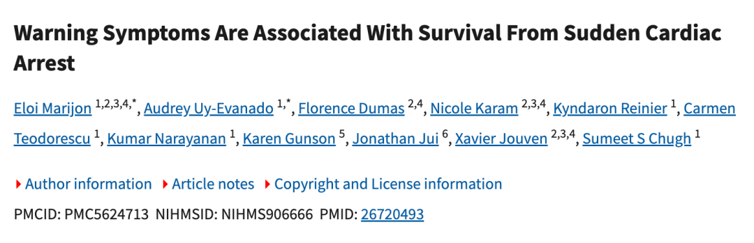 2016《內(nèi)科學(xué)年鑒》刊發(fā)的一篇文章,首次大規(guī)模證實(shí)心臟驟停前存在可識(shí)別的預(yù)警癥狀,打破了“猝死毫無征兆”的傳統(tǒng)認(rèn)知。研究納入的839名心臟驟?;颊咧校?30名有先兆癥狀,占51%,主要為:胸痛、呼吸困難、頭暈。①