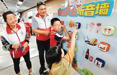 日前,福建省廈門市婦聯(lián)攜手相關(guān)部門舉辦“快樂‘六一’ 安全童行”2023年“六一”體驗(yàn)式生命教育趣味游園活動(dòng)。圖為小朋友們在參加食品安全聽音墻活動(dòng)。 徐 林?jǐn)z |