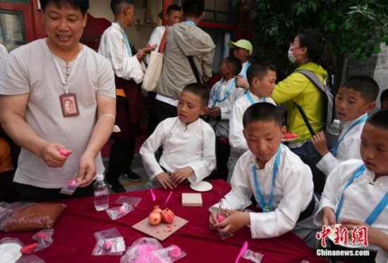 6月1日下午,孩子們來到了位于北京蒙藏學(xué)校舊址的中華民族共同體體驗(yàn)館。蒙藏學(xué)校是近代第一所少數(shù)民族專門學(xué)校。在中華工藝美術(shù)體驗(yàn)空間,孩子們跟著老師一起捏“石榴”;觀看演出時,孩子們與前來參加演出的民族藝術(shù)家們一起載歌載舞。