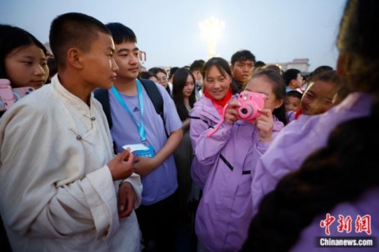 6月1日清晨的天安門廣場,一群來自青海玉樹、身著傳統(tǒng)藏族服飾的孩子組成了一道亮麗的風(fēng)景線。