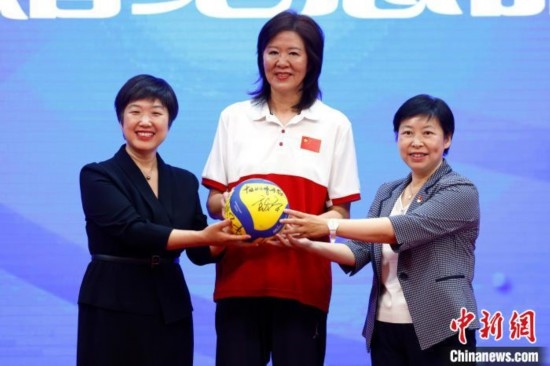 圖為郎平為陳經(jīng)綸中學首屆“郎平杯”排球聯(lián)賽開球。中新社記者 富田 攝