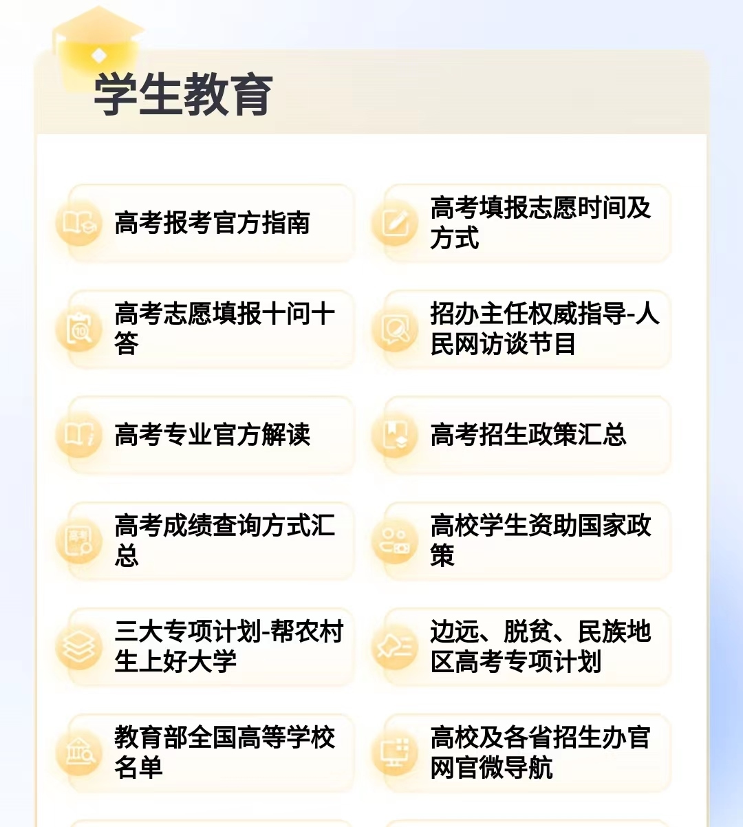 2.關(guān)注“招辦主任來了”欄目,了解心儀高校的具體情況、招生政策及專業(yè)前景等;