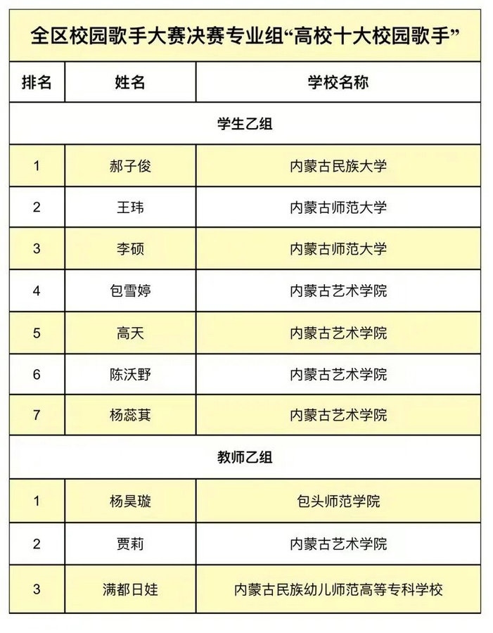 2023年全區(qū)大學(xué)生藝術(shù)節(jié)校園歌手大賽自今年9月啟動(dòng)以來,經(jīng)過校級(jí)初賽、自治區(qū)復(fù)賽等層層選拔與評審,最終從來自全區(qū)46所高校上報(bào)的516份參賽作品中選出40名選手進(jìn)入決賽。經(jīng)過激烈角逐,專業(yè)組和業(yè)余組分別產(chǎn)生前10名選手獲得本次“高校十大校園歌手”榮譽(yù)稱號(hào),并于23日頒獎(jiǎng)晚會(huì)現(xiàn)場,為獲獎(jiǎng)選手現(xiàn)場頒發(fā)榮譽(yù)證書和獎(jiǎng)杯。