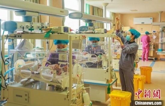 2月10日,在山東省榮成市婦幼保健院新生兒重癥監(jiān)護病房,醫(yī)護人員對新生兒患者進行醫(yī)療護理。新生兒患者、早產(chǎn)兒等格外需要醫(yī)護人員的悉心治療與照顧。這里的醫(yī)護人員扮演著“媽媽”的角色,24小時守護著新生兒患者的生命健康。