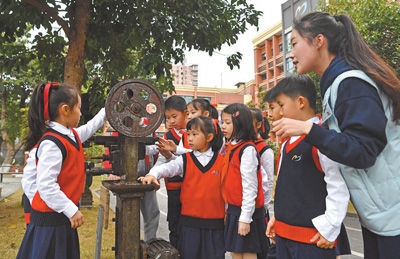 2022年3月,九龍坡區(qū)教委印發(fā)《關(guān)于推進(jìn)中小學(xué)集團(tuán)化辦學(xué)的意見(jiàn)》,謝家灣金茂小學(xué)成為謝家灣教育集團(tuán)一體化辦學(xué)成員校。謝家灣金茂小學(xué)的前身是重慶建設(shè)工業(yè)(集團(tuán))有限公司子弟學(xué)校,約1/3的教師曾是工廠職工?!盎趯W(xué)校情況,我們強(qiáng)調(diào)培養(yǎng)學(xué)生養(yǎng)成熱愛(ài)勞動(dòng)的習(xí)慣,形成陽(yáng)光心態(tài)?!敝x家灣金茂小學(xué)黨總支書(shū)記楊永財(cái)指著校園內(nèi)擺放的老舊機(jī)床說(shuō),“重慶建設(shè)工業(yè)(集團(tuán))有限公司發(fā)展歷史厚重,學(xué)校積極挖掘紅色資源,給孩子們講好革命歷史,上好思政課。”