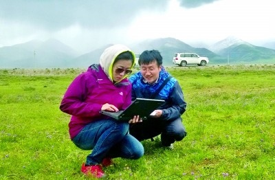 徐娜和同事在野外收集氣象數(shù)據(jù)。 受訪者供圖