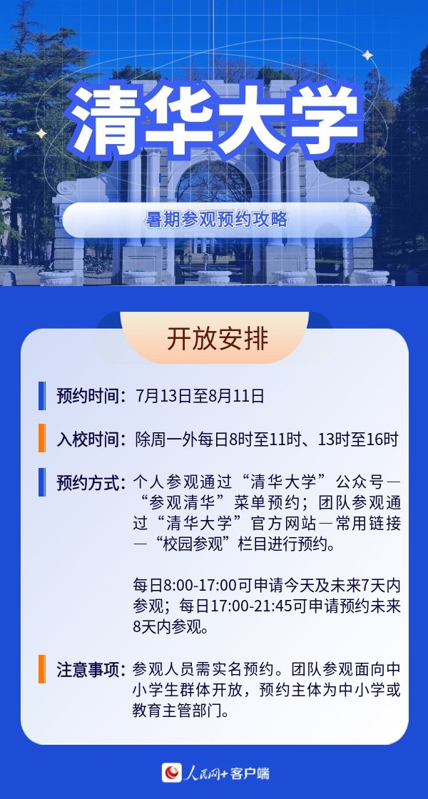 人民網(wǎng)北京7月19日電 暑假來(lái)臨,帶孩子參觀高校,感受學(xué)校人文歷史底蘊(yùn)以及濃厚的學(xué)術(shù)氛圍,已經(jīng)成為很多家長(zhǎng)的選擇。近日,全國(guó)多所高校開放校園,接受公眾參觀。那么如何預(yù)約進(jìn)校?有什么注意事項(xiàng)?人民網(wǎng)特別整理了部分高校的參觀預(yù)約攻略,一起來(lái)看。(郝孟佳、實(shí)習(xí)生趙雪祺)