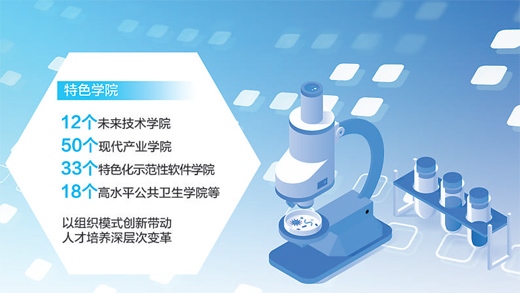 高東鋒:新時代以來,高等教育戰(zhàn)線積極服務(wù)國家戰(zhàn)略需要,體系化推進(jìn)新工科、新醫(yī)科、新農(nóng)科、新文科建設(shè),在教育教學(xué)的組織模式、培養(yǎng)機制、內(nèi)容方法、理論實踐等方面持續(xù)深化改革。聚焦戰(zhàn)略性新興領(lǐng)域和急需領(lǐng)域,布局建設(shè)了12個未來技術(shù)學(xué)院、50個現(xiàn)代產(chǎn)業(yè)學(xué)院、33個特色化示范性軟件學(xué)院、18個高水平公共衛(wèi)生學(xué)院等特色學(xué)院,分批布局45個國家產(chǎn)教融合創(chuàng)新平臺,有針對性、有組織地開展人才培養(yǎng),取得積極進(jìn)展,牽引帶動高等教育的全方位、全過程、全要素改革。