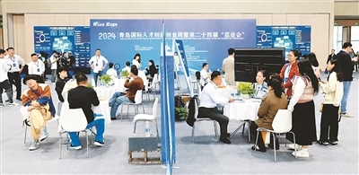 圖為2024青島國際人才創(chuàng)新創(chuàng)業(yè)周暨第二十四屆“藍洽會”現(xiàn)場。孫冰攝