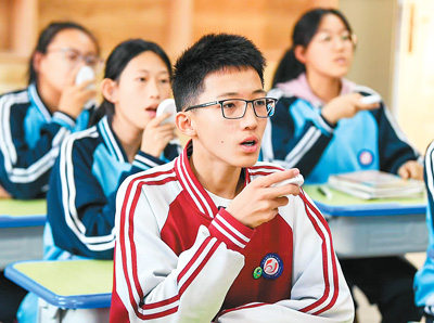 昆都侖區(qū)一所中學的學生使用英語聽說學習平臺進行練習。