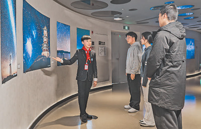 “紅領巾”講解員夏梓軼在上海天文館為觀眾講解星空攝影作品。