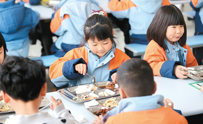 2月18日,浙江省湖州市德清縣春暉小學食堂內(nèi),小學生們在享用營養(yǎng)午餐。新學期開始,德清縣全面推廣由浙江大學注冊營養(yǎng)師團隊定制的營養(yǎng)餐,確保學生吃得安心、吃得健康、吃得科學。