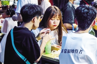 在中山西路,耀眼的霓虹燈點亮了城市最繁華的商業(yè)區(qū),人們摩肩接踵,這里聚集了更多的年輕人,他們一手緊握手機,一手拎著美食,眼睛還不停地尋找更新奇的東西?!皼]想到這么多人,感覺比過年的時候人還多。”“我們是在網(wǎng)上看到這里開放夜市,所以約幾個朋友一起過來逛街的,沒想到這么熱鬧。”采訪中,無論是商戶還是市民,都為眼前繁華、熱鬧的場景欣喜。