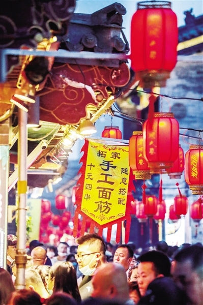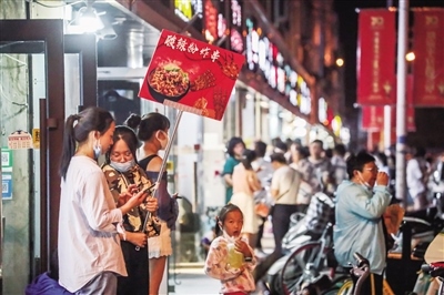 城市的夜色是風景,是心情,是生活,也是商機。夜幕之下,圍繞著大召的街市流光溢彩、人頭攢動,中山路上更是霓虹璀璨、人聲鼎沸,惱包村、萬達花樣年華步行街、中海銀河天街、809美食街、附中東巷……每一個曾經(jīng)深藏在人們心中的夜市繁華街區(qū)又恢復了往日的煙火氣息,讓這座城市增添了更多的活力。