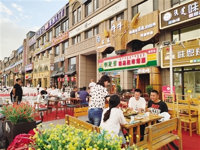 與大召濃厚的本土文化特色相比,惱包村是另外一種具有江南風格的消遣之地,人們流連于它的小橋流水,在這里不僅大人們可以消遣,孩子們也有游玩的地方。旋轉(zhuǎn)木馬、跳跳床等,給孩子們增添了更多的歡樂。而在萬達花樣年華步行街,因為開放夜市,沿街商戶的營業(yè)時間延長到了晚上22時,這對于經(jīng)營水果、蔬菜生意的店老板閆先生來說無疑是好消息?!耙故胁砰_了幾天,我們家的營業(yè)額就大幅度提升了,比之前要多出來1000塊錢,因為周邊就是居民小區(qū),大家出來閑逛,看到蔬菜、水果自然而然的就會挑選,我們的生意也就好做了?!遍Z先生說。