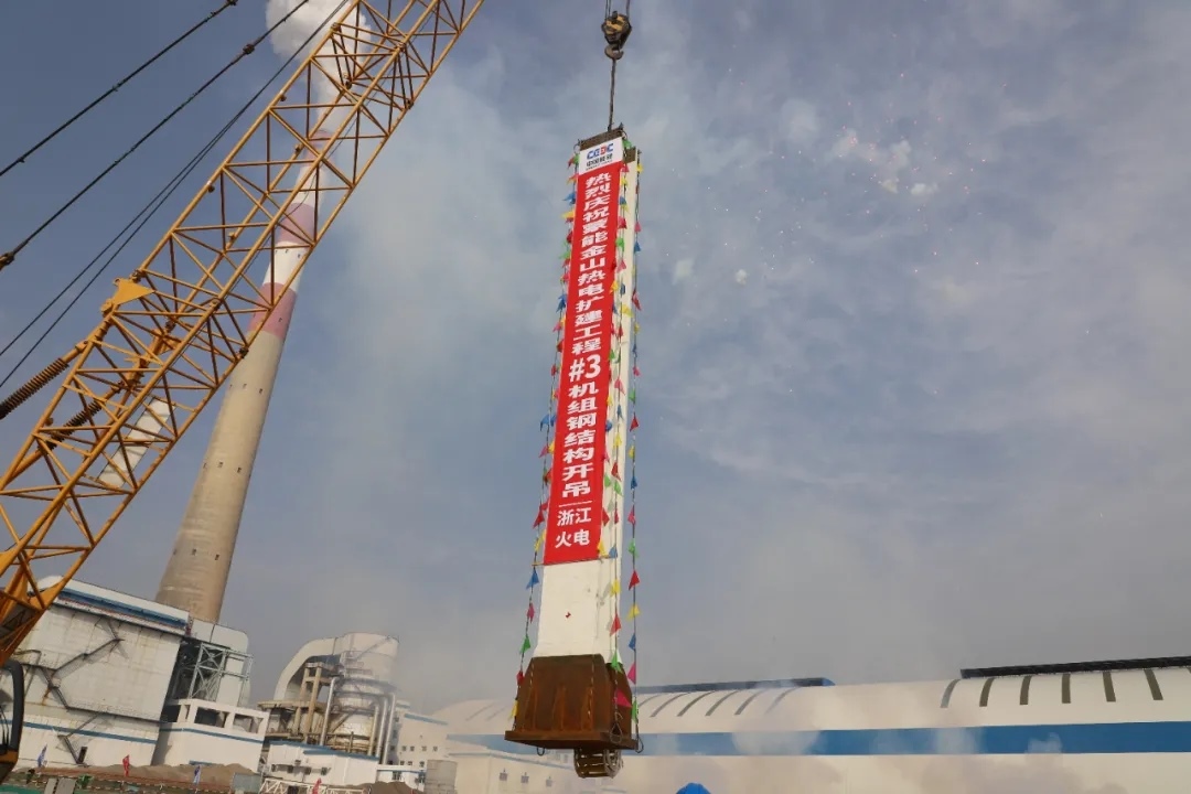 3號機(jī)組鍋爐首根鋼結(jié)構(gòu)吊裝就位