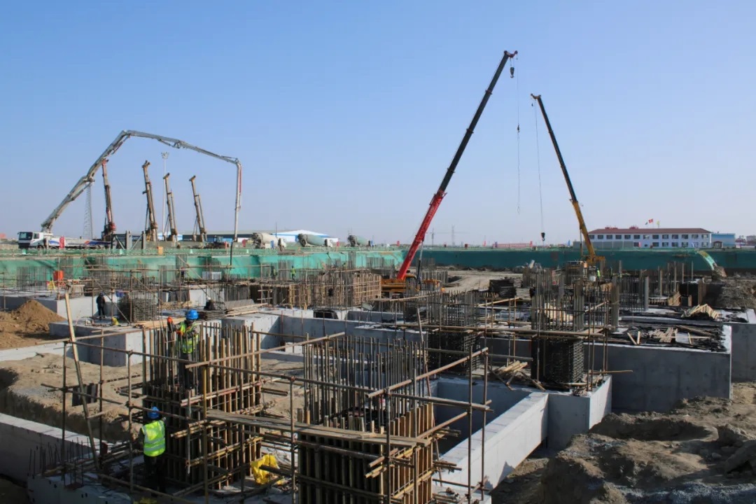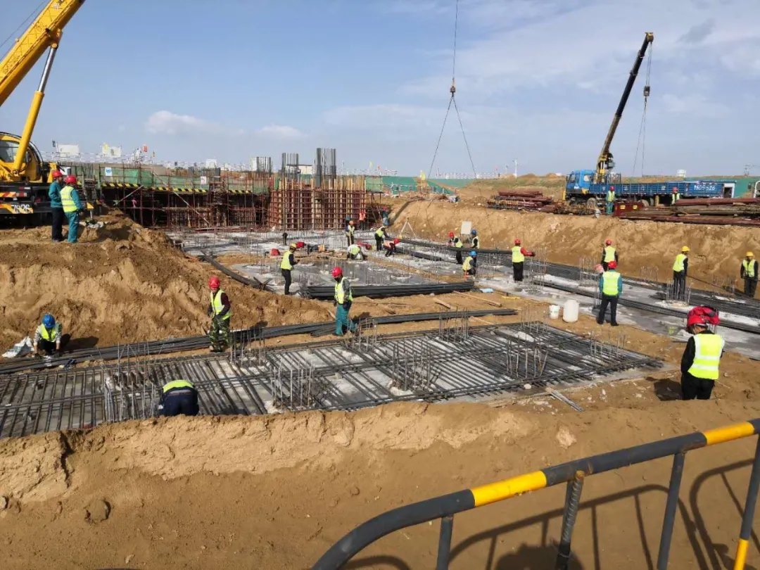 主廠房4號鍋爐承臺澆筑緊張進(jìn)行中